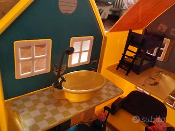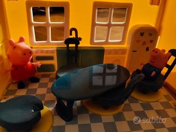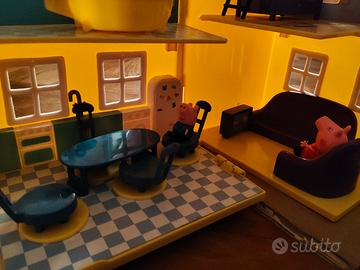 Peppa Pig - La grande casa Deluxe Multicolor - Giochi Preziosi Completa e integra di tutti i pezzi La grande casa si apre e rivela 4 stanze arredate. La cucina con un tavolo dove mangiare tutti insieme al tavolo. Il soggiorno con la poltrona dove rilassarsi guardando la TV. La cameretta con un letto accogliente dove dormire dolci sonni. Il bagno con una vasca per un bagno caldo.