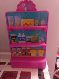 vendo il negozio di Barbie con mensole e scaffale, cassa con rullo che gira e Barbie