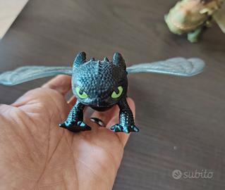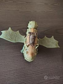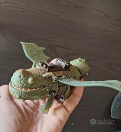 Vendo fantastica coppia di draghi giocattolo originali Spin Master, tratti dalla celebre saga "Dragon Trainer". Il lotto include i seguenti personaggi: Sdentato: Il leggendario Furia Buia. Il personaggio è di colore nero con i caratteristici occhi verdi. Mantiene la sua particolarità unica: la metà rossa della pinna caudale (come visibile nelle foto), dettaglio fedele al film. Presenta ali apribili meccanicamente. Broncio: Il robusto drago di colore verde. Questo modello è dotato di una sella marrone sul dorso e di un meccanismo funxionante. Condizioni: I giochi sono usati ma in buone condizioni estetiche, come mostrato nelle foto dettagliate.Sono perfetti per collezionisti o per far giocare i bambini amanti della saga.