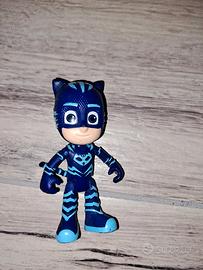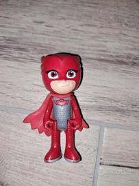3 personaggi in plastica del cartone animato "Super Pijamini" Gatto-boy, Gufetta e nemico ninja. Misure: 8-9 cm