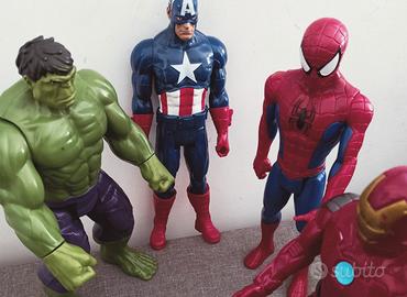 vendo giocattoli personaggi della Marvel altezza 22 cm circa rispettivamente Spiderman - Ironman - Capitan america e Hulk.