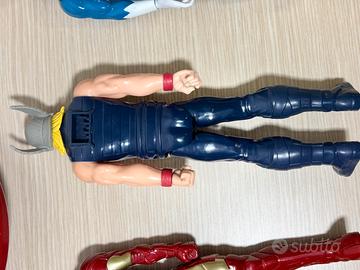 4 Personaggi Marvel 30 cm Iron man War Machine Quicksilver Thor + scudo Capitan Amirica da indossare Vendo lotto completo