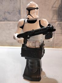 due personaggi Star Wars sorprese uova Kinder, altezza cm 12 e 17, uno apribile contiene gioco per parare dischetti plastica , vendo in coppia