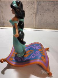 personaggio Disney Jasmine (Aladdin) su tappeto, sorpresa uovo Pasqua Kinder, ottimo stato, misura tappeto cm 11, bambolina cm 13