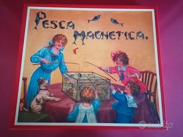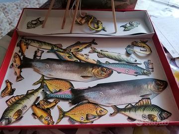 Pesca magnetica Dal Negro gioco da tavolo completa di laghetto in cartone, n. 24 oggetti pescabili e n. 4 canne in legno con magnete