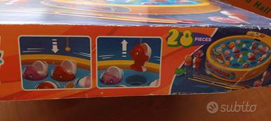 Gioco di gran divertimento per bambini e ragazzini dove con e canne a calamita si cerca di pescare dei pesciolini nel momento che aprono bocca!