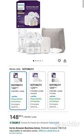 Vendo per doppio regalo, tira latte mai usato, chiuso e impacchettato su Amazon Costa 150€ : Combinazione efficace di estrazione e stimolazione per un flusso di latte più rapido grazie alla tecnologia Natural Motion Semplice da pulire e assemblare: il tiralatte elettrico Philips Avent è dotato di un sistema di estrazione chiuso e di un numero inferiore di componenti da pulire Usalo con facilità quando sei fuori di casa: la batteria del tiralatte Philips Avent dura fino a 3 sessioni con una sola ricarica Tiralatte di qualità ospedaliera: estrae il latte a un ritmo simile a quello del bambino Misura unica: la morbida coppa in silicone si adatta perfettamente al 99,98% dei capezzoli³ Include una tettarella Natural Response che si adatta al ritmo di suzione specifico del bambino, in modo da alternare facilmente tra allattamento al seno e con il biberon Fate un’offerta congrua