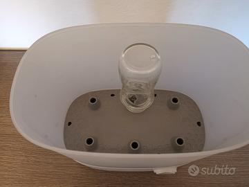 Dotato di spazio per 6 biberon e altri accessori per bambini, come tettarelle, ciucci e parti del tiralatte manuale; il biberon si adatta perfettamente alla maggior parte dei piani cucina grazie al suo design compatto e modulare
