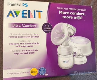 Tiralatte elettrico singolo con coppa massaggiante. Aiuta a stimolare la produzione di latte.