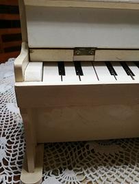 Il piccolo piano In legno dipinto a mano è un delizioso giocattolo degli anni '60. Funzionante, ha un suono vivace e squillante. Un bell'oggetto da arredamento, ma anche un regalo per piccoli appassionati di musica. Quasi perfettamente conservato, se non per la mancanza di un tastino.