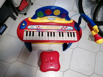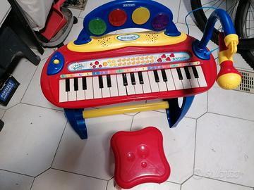 La tastiera Bontempi con microfono e sgabello è un versatile giocattolo musicale, progettato specificamente per i giovani appassionati di musica a partire dai 3 anni. Con il suo design accattivante e la facilità d'uso, promuove la creatività e la comprensione musicale dei bambini. La tastiera offre una varietà di funzioni, tra cui 8 modalità diverse, 7 melodie e 22 canzoni, che consentono agli utenti di esplorare e sviluppare le proprie capacità musicali. Il microfono integrato permette di amplificare la propria voce e integrarla nella musica, rendendo l'esperienza di gioco ancora più entusiasmante. Lo sgabello incluso garantisce una posizione comoda durante il gioco e supporta una postura ergonomica. Questo giocattolo non è solo divertente, ma è anche un'ottima opportunità per coltivare l'amore per la musica fin dalla tenera età. 8 modalità diverse per opportunità di gioco Microfono integrato per amplificare la voce Include 7 melodie e 22 canzoni per lo sviluppo musicale Sgabello comodo per un gioco ergonomico Funziona a batteria.