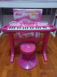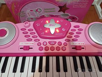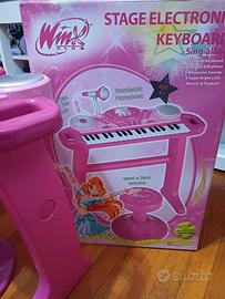 Vendo giocattolo per bambina dai 4 anni: pianola originale Winx tastiera e console perfettamente funzionanti. Attenzione: aggiungere 4 pile stilo per il funzionamento (non incluse nella vendita). Provvisto di scatola, sgabello e microfono funzionante, ma senza supporto) conservata in ottimo stato, come in foto. Preferibile la consegna a mano!