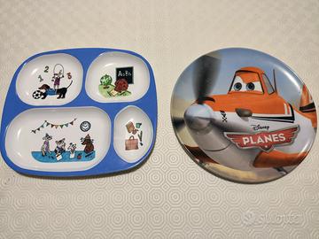 2 piatti bimbo, uno a tema Plains e uno fantasia con 4 vaschette.