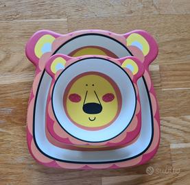 Set di due piatti per bambino e bambina in fibra di bambù, serie animali - 2 pezzi. Leggerissimo. Quasi mai usato.