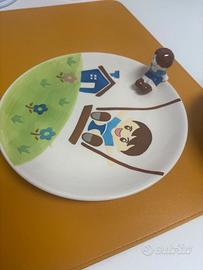 Piatti dipinti a mano con bimbo inserito al bordo.Tutto in ceramica.Mai usati