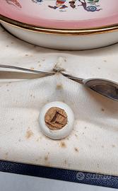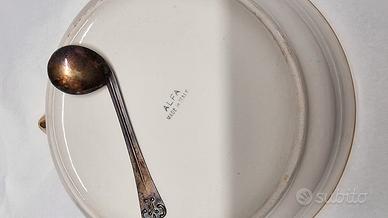 Confezione regalo 🎁 Vintage Piatto in ceramica ALFA con Serbatoio Cucchiaino in argento 800 sughero del tappo da cambiare stoffa macchiata