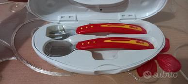 Vendo piatto pappa + posate+bicchiere,mai usato con zainetto