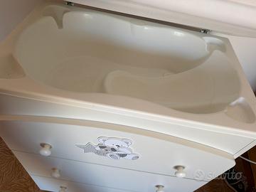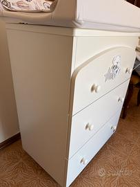 Picci Bagnetto Valdo Orso Grigio Cassettiera a 3 cassetti bianca, con pomoli bianchi e orsetto Valdo Grigio. Misure: cm 47,5 x 75 x h.93
