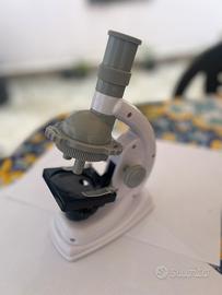Vendo un piccolo microscopio per bambini in buone condizioni, perfettamente funzionante. È un modello semplice e intuitivo, ideale per avvicinare i più piccoli al mondo della scienza. Non presenta segni di usura visibili. L’unico dettaglio da segnalare è una leggera usura nella zona della batteria, dovuta al tempo, ma ho provveduto a pulirla con cura e ho testato tutto: funziona senza problemi. La luce integrata per osservare gli oggetti si accende regolarmente e le batterie sono già incluse. Insieme al microscopio fornisco quattro piastrine trasparenti per osservare cio che si vuole, di cui due già preparate con tre oggetti ciascuna, una pipetta, una fialetta vuota, una pinzetta e un piccolo identikit sugli insetti (solo 9 carte)