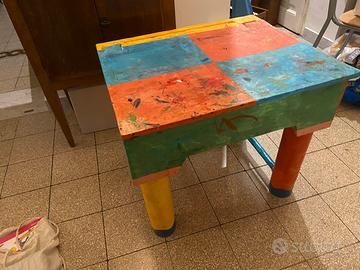 Set da scrivania (tavolo, sedia e specchio) per bambine o bambini in carta pesta colorata . Tavolo apribile ottimo contenitore, dimensioni 69x50xh 60, ritiro zona Porta Maggiore