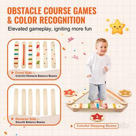 Montessori Balance Board: ideali per l'allenamento a ostacoli, il conteggio, l'allenamento con i colori, l'equilibrio e il rimbalzo del tuo bambino, i nostri colorati stepping stones e le travi di equilibrio a ostacoli sono un'aggiunta divertente ed essenziale a qualsiasi momento di gioco. I bambini possono scatenare la loro creatività creando percorsi a ostacoli e migliorando l'equilibrio e la coordinazione occhio-mano.