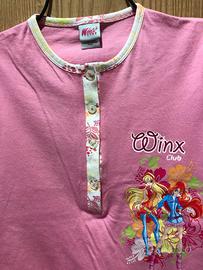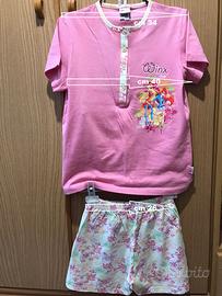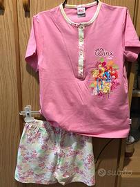 Pigiama per bambina con stampa delle Winx. - Taglia 8-9 anni. - 100% cotone. Misure: maglietta spalle cm 34 e da ascella ad ascella cm 40 - slip in cintura cm 26 estensibile perchè elastico