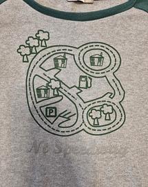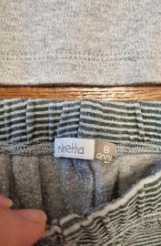 Pigiama due pezzi per bambino. Marca Ninetta. - Maglia a maniche lunghe raglan grigia con stampa - Pantaloni lunghi a righe grigie e verdi.