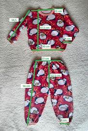 Pigiama invernale per bambini, unisex, con sfondo di colore rosso sul quale compaiono degli allegri pinguini.