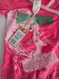 Pigiama della Diesel per neonato, a maniche lunghe, taglia 9 mesi. Colore rosa/fucsia con stampa grafica. Con apertura a bottoni facilitata