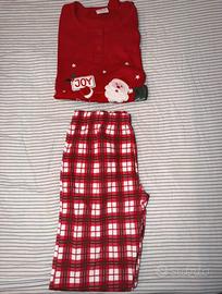 Pigiama natalizio Preziosa Night taglia 9-10 anni, nuovo mai indossato e ancora nella confezione originale. In caldo cotone 220 gsm, composto da maglia rossa con ricamo gigante di Babbo Natale, orsetti e scritta “JOY”, e pantaloni a quadri rossi e bianchi con elastico in vita. Morbido, caldo e perfetto per le feste o come idea regalo natalizia.