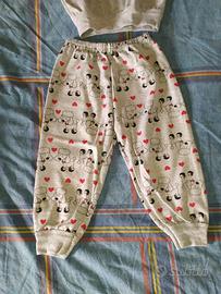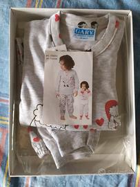Grazioso pigiama spezzato per bambina, composto da maglia a maniche lunghe e pantaloni lunghi.