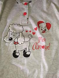 - Maglia grigia con stampa di un cane barboncino e cuori.