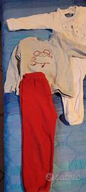 Set di 3 colorati pigiami: i due a corpo intero per fascia 12-18 mesi, il terzo per fascia 18-24.
