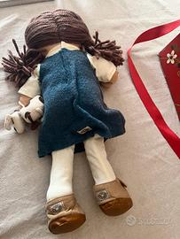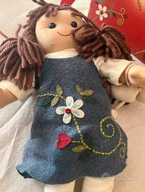 Bambola Pigotta, originale My Doll in stoffa, nota anche come la “bambola del cuore”. Giocattolo artigianale da collezione. Gli abiti sono in maglia e cotone con ricami floreali.