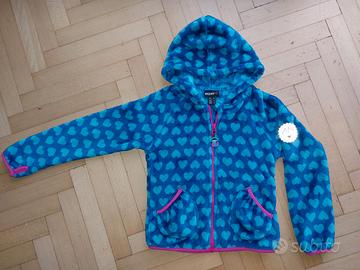 Pile morbidissimo con cerniera e cappuccio. Molto carina la fantasia tutta a cuori. 5 anni 110 cm usato 1 volta.
