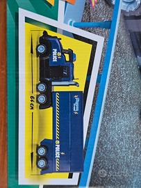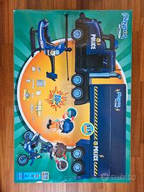 veicolo giocattolo con luci 3 in 1, contenitore e palcoscenico di gioco, 1 moto, 1 mini elicottero, 2 figure, polizia e prigioniero e accessori.