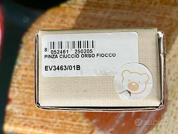 Pinza porta ciuccio con placca in argento laminato orsetto baby, colore bianco