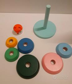 Piramide in legno Ikea Montessori usata poco come da foto. Sul mio profilo trovate altri giochi e vestiti bimbo nuovi ed usati.