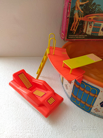 Il gioco giocattolo da collezione playset per la bambola è COMPLETO di tutti gli accessori, la piscina montata misura cm 40 di diametro x 13 cm di altezza, il tutto in condizioni come da foto.