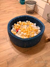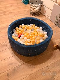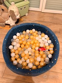 Piscina di Palline con 200 Palline ∅ 7cm per Bambino Bambina - Rotonda in Memory Foam Velluto Super Morbido - Cielo Notturno: Bianco/Trasparente/Oro