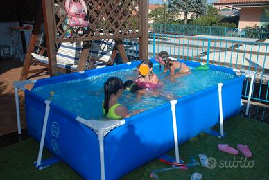 Vendo Piscina per ragazzi delle dimensioni di 260x160x65 cm in buone condizioni utilizzata per sole due stagioni estive. La piscina è facile da montare e molto comoda da riporre nella sua confezione una volta smontata. Non presenta non ha perdite ed alcun difetto ed è corredata da nuova pompa eterna di circolazione e filtraggio. E' stata utilizzata dai miei nipoti con molto divertimento. Le spese di spedizione a carico dell'acquirente saranno calcolate al momento della vendita.