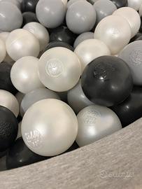 Vendo piscina palline marca kiddymoon con circa 200palline. Interamente sfoderabile e lavabile. Nessun segno di usura Diametro 90 cm