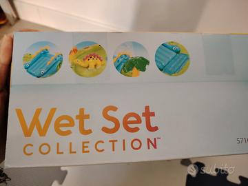 Piscina gonfiabile per bambini misure 1.91 m x 1.52 m. Compresa di palma collegabile all'acqua che spruzza acqua, dinosauro e scivolo. Nuovo mai aperto.