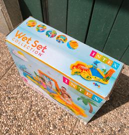 Piscina dai 2 anni, dotata di attacco acqua per spruzzi dal fiore e cascata d' acqua per divertimento assicurato! Usata pochissimo e in perfette condizioni, dotata di tutti gli accessori. Riposta in maniera certosina nella sua scatola originale. Disponibile per gonfiaggio a riprova della tenuta perfetta.