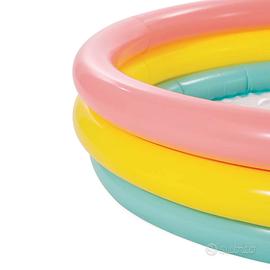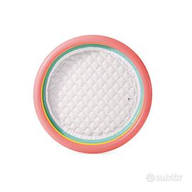 Piscina gonfiabile Sunset Glow, per fare divertire in estate anche i bambini più piccoli dai 2+ anni. È prodotta in vinile colorato resistente, spesso 0,20 mm. Dispone di un tappetino morbido e di tre anelli colorati gonfiabili. Si gonfia velocemente, grazie alla pratica valvola e ha una dimensione di 114×25 cm. Capacità d’acqua al livello di riempimento suggerito di 18 cm: 131 L. All’interno della confezione sarà presente una toppa di riparazione.