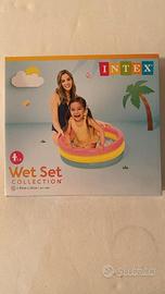 Piscina gonfiabile Intex Wet Set Collection, perfetta per i più piccoli. Le sue dimensioni la rendono ideale per giardini o terrazzi. - Diametro: 61 cm - Altezza: 22 cm - Età consigliata: 1-3 anni