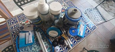 Per inutilizzo vendo piscinetta con pompa/filtro,come da foto, con accessori e prodotti con confezioni aperte ma quasi piene. Utilizzata qualche giorno lo scorso anno.Per ragioni di ingombro consegna a mano su Roma zona Nuovo Salario.