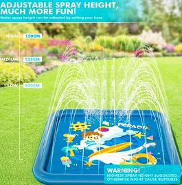 Piscina/Tappetino Gioco d'Acqua antiscivolo Splash Pad, spruzza la piscina con giochi d'acqua, Giocattolo gonfiabile - tappetino spray da giardino per giochi all'aperto. Piscina all'Aperto per Piccoli Peradix - Tappetino Gioco Acqua