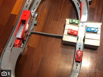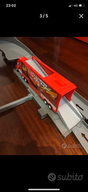 La tribuna fa da lanciatore e l'auto di Saetta gira sulla pista e può passare attraverso il camion Mack che fa da rampa. Il rimorchio è collegato al lanciatore che lo può far spostare di lato.