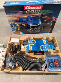 Vendesi pista Carrera go! Sonic. Usata poco in scatola originale. Da cambiare le spazzole intercambiabili sotto le autine (vedere foto) e manca la testa di sonic di una macchinina (vedere foto).